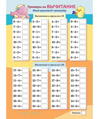 Игра Обучающая А4"Пиши и стирай. Сложение и вычитание" Ио4_30485 Хатбер(2/30)