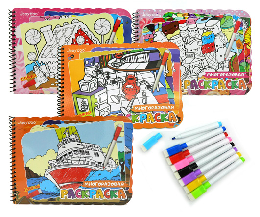Раскраска А4 JOOYDOO 8л CF-141/CH-293 "Многоразовая" на гребне, 8 стираемых маркеров в комплекте, цвета в ассортименте №QD-3003 (1/10/80)