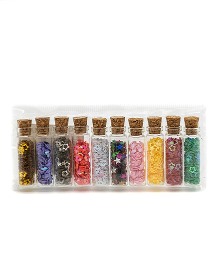 Блестки сухие 10шт. CL-85 Фигурные, в стеклянных баночках с пробкой 10*35мм, в ПВХ-пакете (1/1/600)