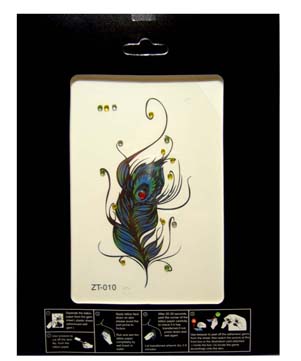 Наклейки Тату BF-32 INTELLIGENT "Перо" черн. со стразами 16*21см (1/12/60)