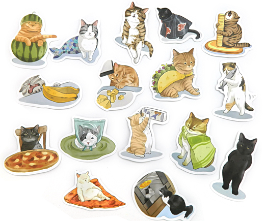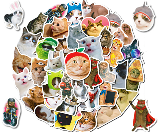 Наклейки EH-11 "Забавные котики" стикерпак 50шт, 6см, матовые, цвета ассорти (1/200)