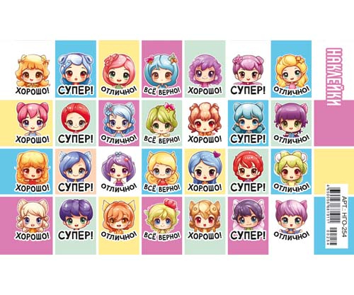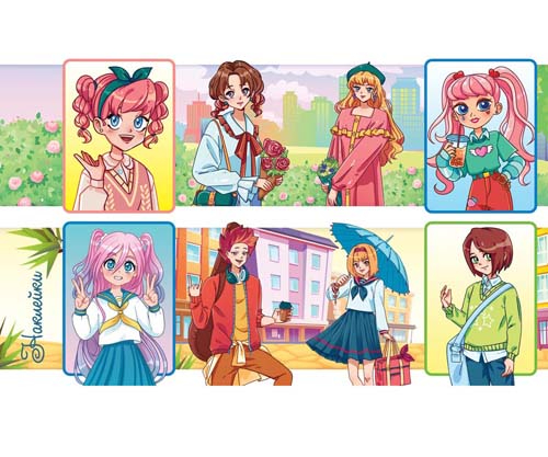 Наклейки QH-16 "Аниме" в рулоне, 490шт, 2,5х2,5см, в ПВХ пакете (1/100)