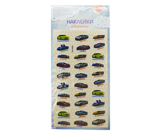 Наклейки DA-85903 Оценки "Машины" объемные ПВХ, 21*10см, 30шт на листе (20/2240)