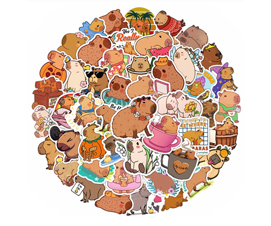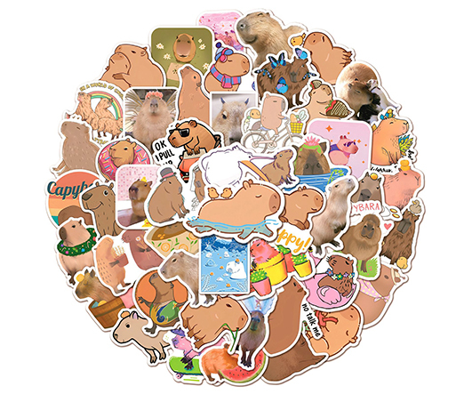 Наклейки EH-26 "Капибары" стикерпак 50шт, 6см, цвета ассорти (1/200)