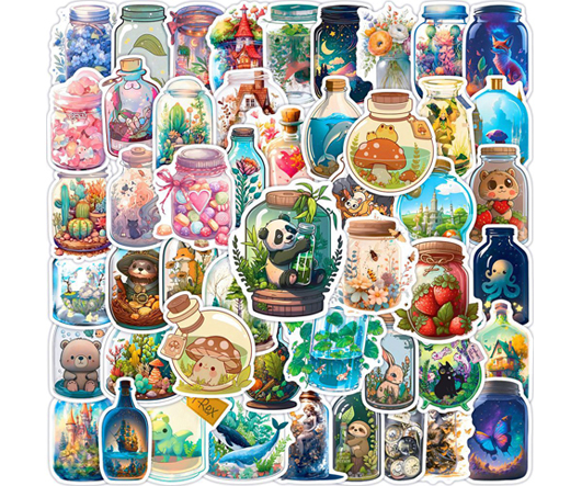 Наклейки EH-19/1 "Животные в баночке" стикерпак 50шт, 6см, матовые, цвета ассорти (1/200)