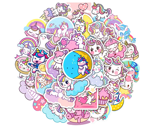 Наклейки EH-27 "Единорожки" стикерпак 50шт, 5-6см, глянцевые, цвета ассорти (1/200)