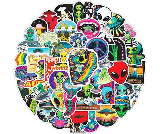 Наклейки EH-28 "НЛО" стикерпак 50шт, 6см, глянцевые, цвета ассорти (1/200)