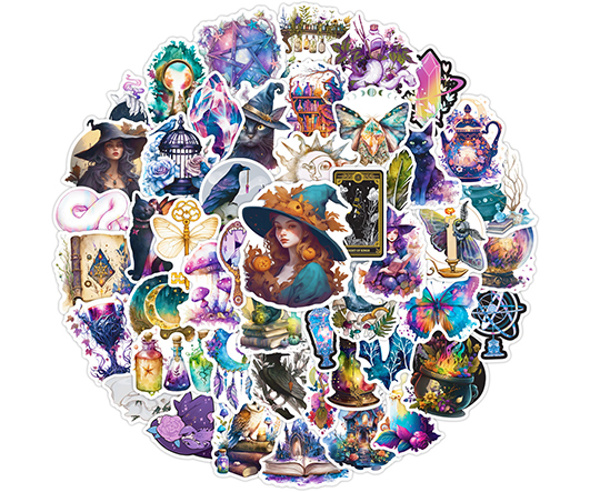 Наклейки EH-29 "Волшебницы" стикерпак 50шт, 6см, глянцевые, цвета ассорти (1/200)