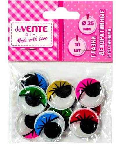 Наклейки "ГЛАЗКИ" deVENTE пластик, круглые, с ресничками, 25мм (10шт/уп), цветные 8001316 (2/24)