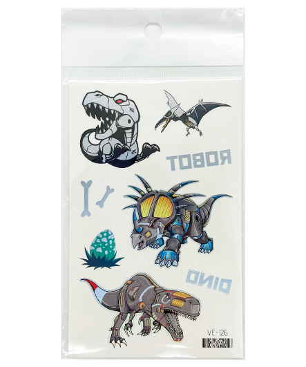 Наклейки Тату DF-191 "Диноробот" 9 штук на листе, 12х7,5см, металлик эффект VE-126 (10/500)