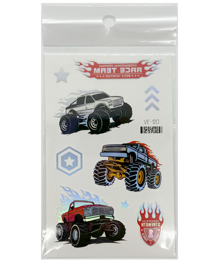 Наклейки Тату DF-195 "Монстр трак" 9 штук на листе, 12х7,5 см, металлик эффект VE-120 (10/500)