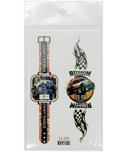 Наклейки Тату DF-202 "Часы. Монстр трак" 2 штуки на листе, 12х7,5см, светящиеся в темноте Ei-299 (10/500)