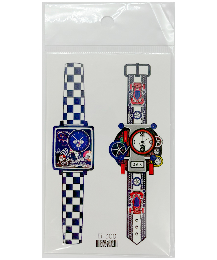 Наклейки Тату DF-203 "Часы" 2 штуки на листе, 12х7,5см, светящиеся в темноте Ei-300 (10/500)