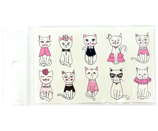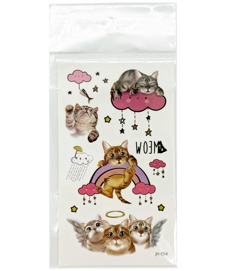 Наклейки Тату DF-218 "Котики" 10 штук на листе, 10,5х6см JH-040 (10/500)