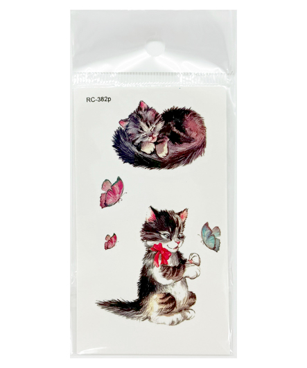 Наклейки Тату DF-217 "Котята, бабочки" 5 штук на листе, 10,5х6см RC-382p (10/500)