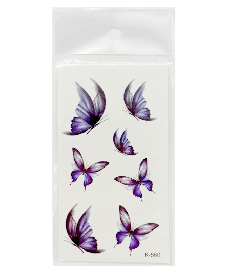 Наклейки Тату DF-219 "Синие бабочки" 7 штук на листе, 10,5х6см K-560 (10/530)