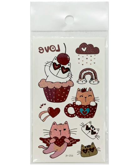 Наклейки Тату DF-220 "Котики Love" 8 штук на листе, 10,5х6см JH-056 (10/500)