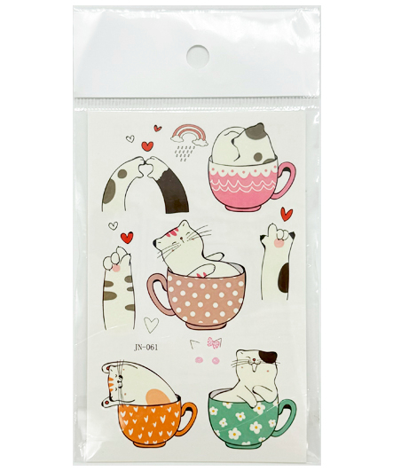 Наклейки Тату DF-225 "Чайные котики" 10 штук на листе, 12х7,5см JN-061 (10/200)