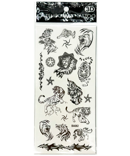 Наклейки Тату DF-232 "Тигр, медведь,волк, узоры" 18 штук на листе, 19х9см черные BA062 (10/500)