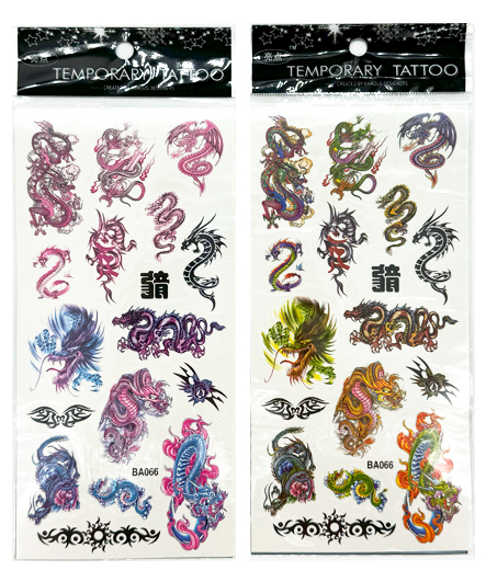 Наклейки Тату DF-233 "Китайский дракон, узоры" 17 штук на листе, 19,5х9,5см BA066 (10/200)