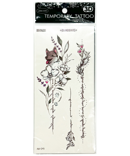 Наклейки Тату DF-198 "Собака, рыбка, цветы, надписи" 3 штуки на листе, 19х9см AM-049 (1/75)