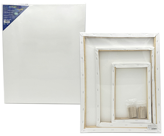 Холст DE-80 Набор 3 штуки (40х50, 30х40, 20х30 см), белый, лен, 280гр/м2, на подрамнике, с клиньями, в к/кор (1/20)