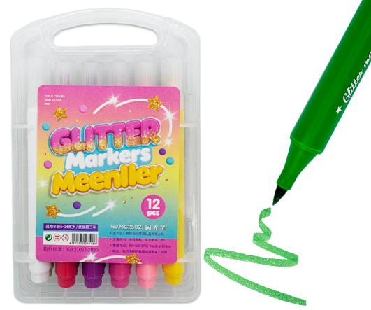 Маркер ГЛИТТЕР 12 цв. DO-237 1-5мм, кисть, 3хгранный корпус, в пластиковом пенале MG2502 (1/36/144)