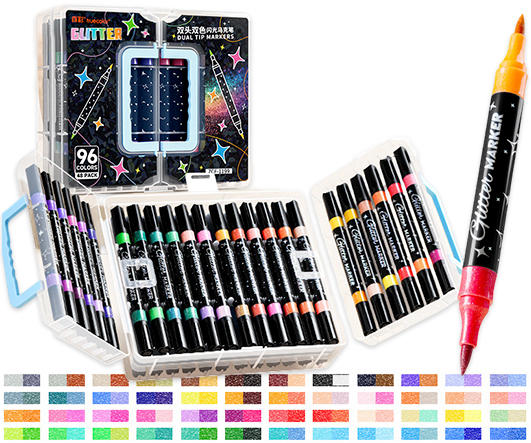 Маркер ГЛИТТЕР 48 шт. 96 цв. DO-272 Двусторонние, кисть, 1-5мм, черный корпус, в пластиковом пенале ZCF-1199 (1/24)