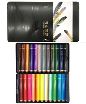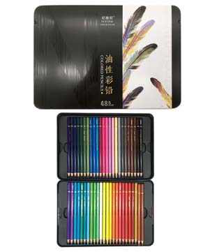 Карандаши 72 цв. Nyoni CD-399/NY-4 деревянные, заточенные, в металлической коробке рисунок перья №N8520 (1/3/15)