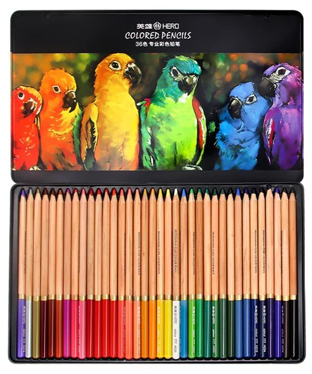 Карандаши 36 цв. Hero AN-92 маслянные деревянные, заточенные, в металлической коробке 777-36 (1/42)