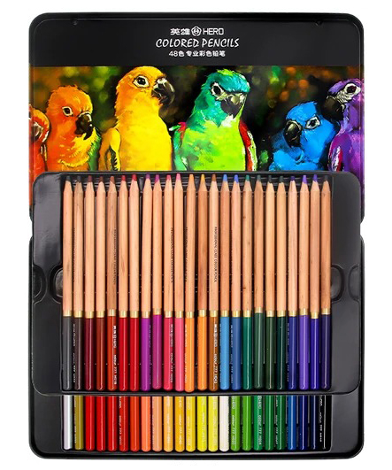 Карандаши 48 цв. Hero AN-93 маслянные деревянные, заточенные, в металлической коробке 777-48 (1/30)