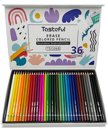 Карандаши 36 цв. DH-127 "Стираемые" мягкие, 4мм, деревянный шестигранный корпус, заточенные, в к/к (1/20)