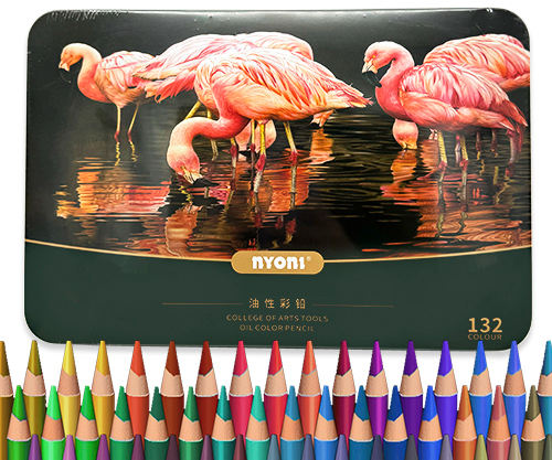 Карандаши 132 цв. Nyoni AN-56 Профессиональные масляные, деревянные, заточенные, в металлическом пенале, в к/к №8530 (1/2/10)