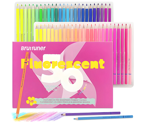 Карандаши 50 цв. Brutfuner XC-23 "Флуоресцентные" круглый деревянный корпус, заточенные, в к/кор Y696-50 (1/10/40)