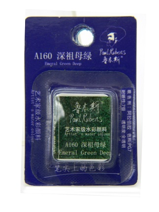 Краска акварель 1 цв. Профессиональная, Зеленый изумрудный A160, кювета, на блистере, Paul Rubens (1/228)