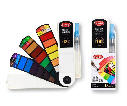 Краска акварель 18 цв. FC-1 "Веер" кисть с резервуаром для воды в комплекте, в упаковке ПВХ №10502 (1/30/120)