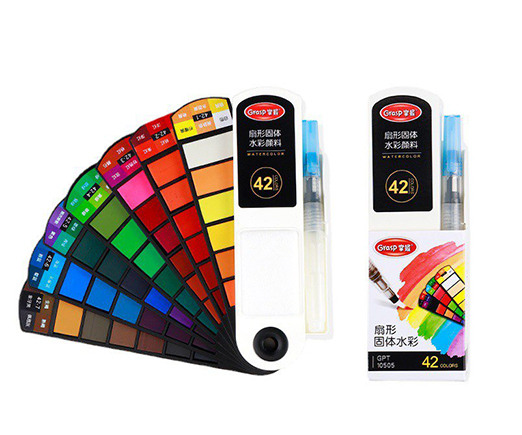 Краска акварель 42 цв. FC-4 "Веер" кисть с резервуаром для воды в комплекте, в упаковке ПВХ №10505 (1/30/90)