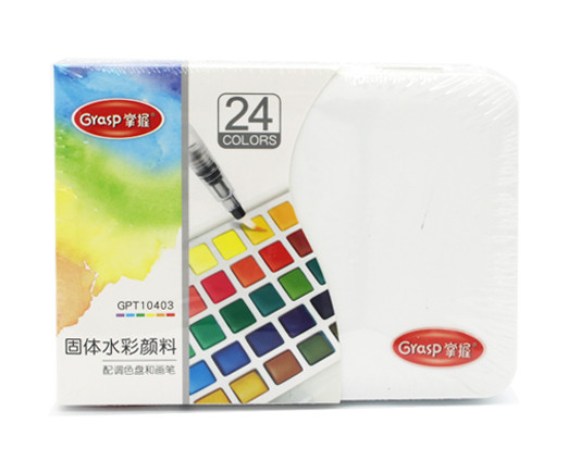 Краска акварель 24 цв. FC-7 кювета, в белом пластиковом пенале, с кистью с резервуаром для воды №10403 (1/8/64)