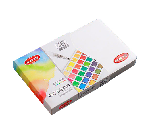 Краска акварель 48 цв. FC-9 кювета, в белом пластиковом пенале, две кисти с резервуаром для воды №10405 (1/6/36)