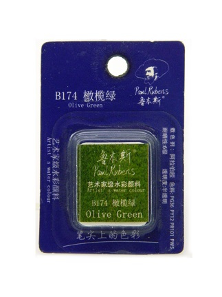 Краска акварель 1 цв. Профессиональная, Зеленый оливковый B174, кювета, на блистере, Paul Rubens (1/144)