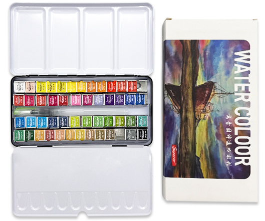 Краска акварель 48 цв. DL-333/DI-592 SUPERIOR кюветы, в металлическом пенале, кисть с резервуаром для воды, в к/кор F963-16 (1/30)