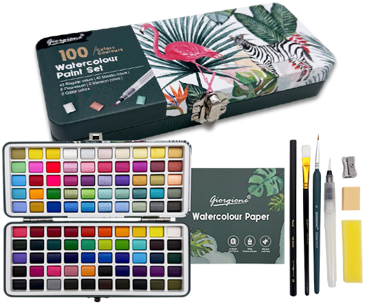 Краска акварель 24 цв. DL-332/DJ-382 SUPERIOR кюветы, в металлическом пенале, кисть с резервуаром для воды, в к/кор F963-16 (1/8/48)