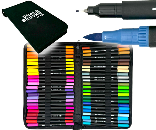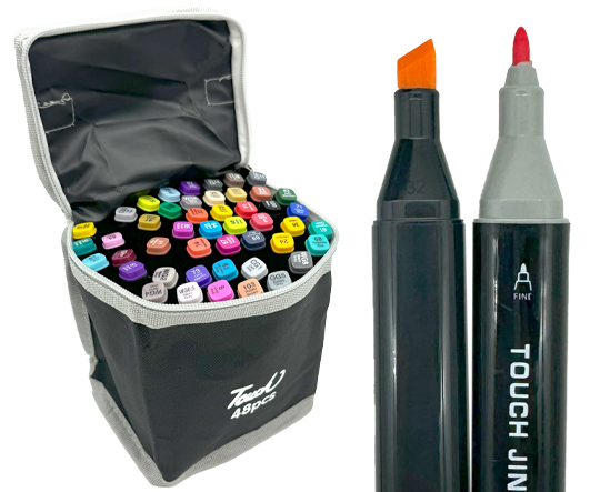 Скетч-маркеры 48 цв. DH-4 Двусторонние (линер+кисть) 1-3мм, круглый корпус, в черном пенале на молнии (1/24/48)