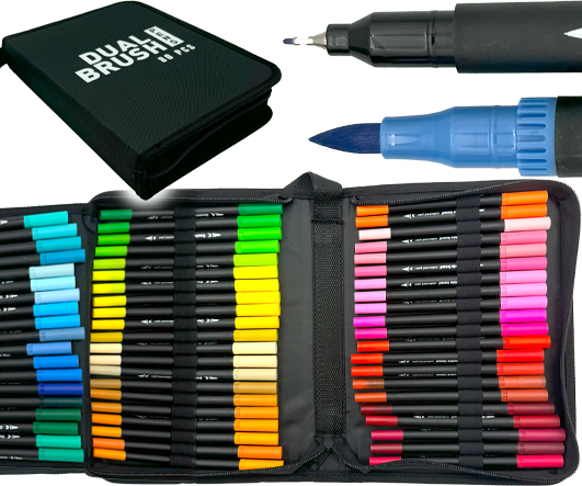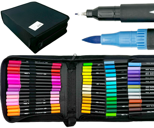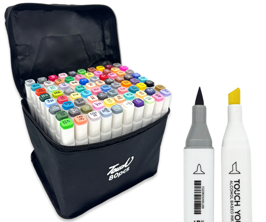 Скетч-маркеры 80 цв. DH-6 Двусторонние (линер+кисть) 1-3мм, круглый корпус, в черном пенале на молнии (1/12/24)
