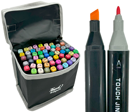Скетч-маркеры 60 цв. DH-20 Двусторонний (овальный+скошенный) черный квадратный корпус, в текстильной сумке (1/24)