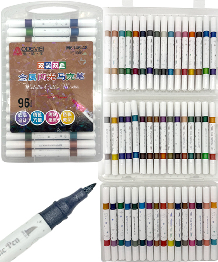 Скетч-маркеры 96 цв. 48 шт. DI-332 Металлик Глиттер, двусторонний, 1-4мм, кисть, пластиковый футляр M6146-48 (1/36)