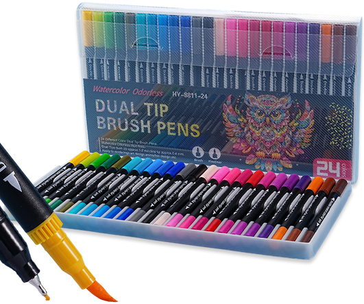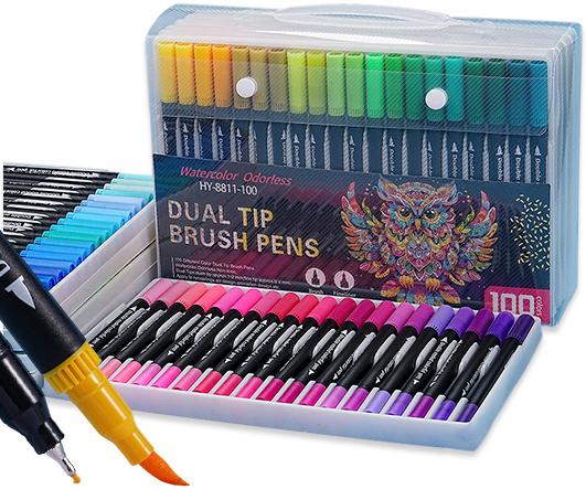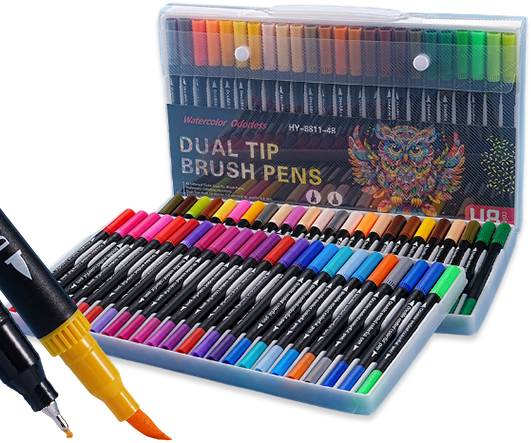 Двусторонние скетч-маркеры идеальный инструмент для скетчинга. Прекрасно подходят для художников-иллюстраторов, дизайнеров, архитекторов и тех, кто рисует комиксы и манга. Наконечник маркеров: линер и кисть. Чернила на водной основе в маркерах изготовлены