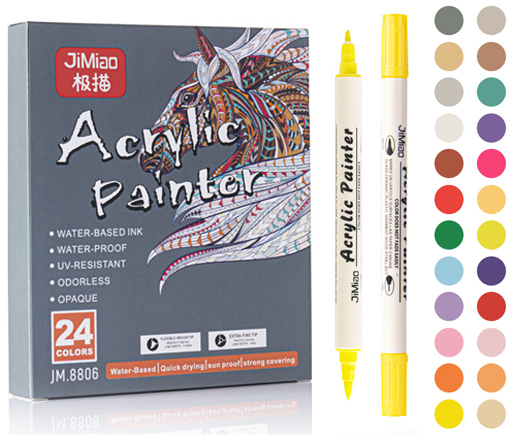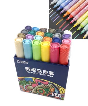 Маркер акриловый 24 цв. CY-187 1-5мм, кисть/пулевидный, круглый белый корпус, в к/кор №JM8806 (1/72)