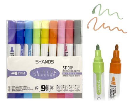 Маркер акриловый 9 цв. CF-54 ГЛИТТЕР, 2мм, овальный S310 в упаковке ПВХ (1/12/96)