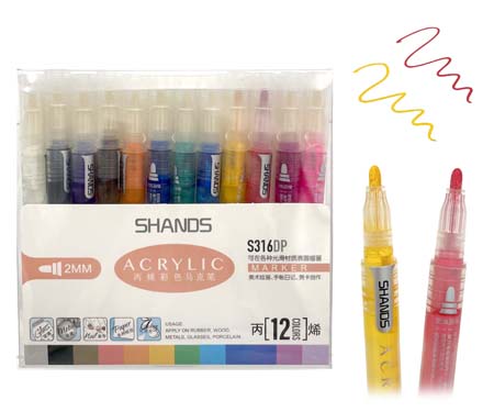 Маркер акриловый 12 цв. CF-57 2мм, овальный S316 в упаковке ПВХ (1/96)